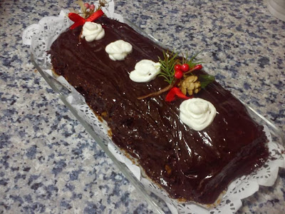 Rellenamos el tronco y derretimos el chocolate al baño María con el chorreón de nata y 3 cucharadas de azúcar.